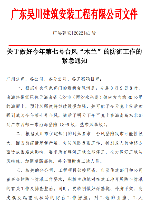 關(guān)于做好今年第七號臺風(fēng)“木蘭”的防御工作的緊急通知